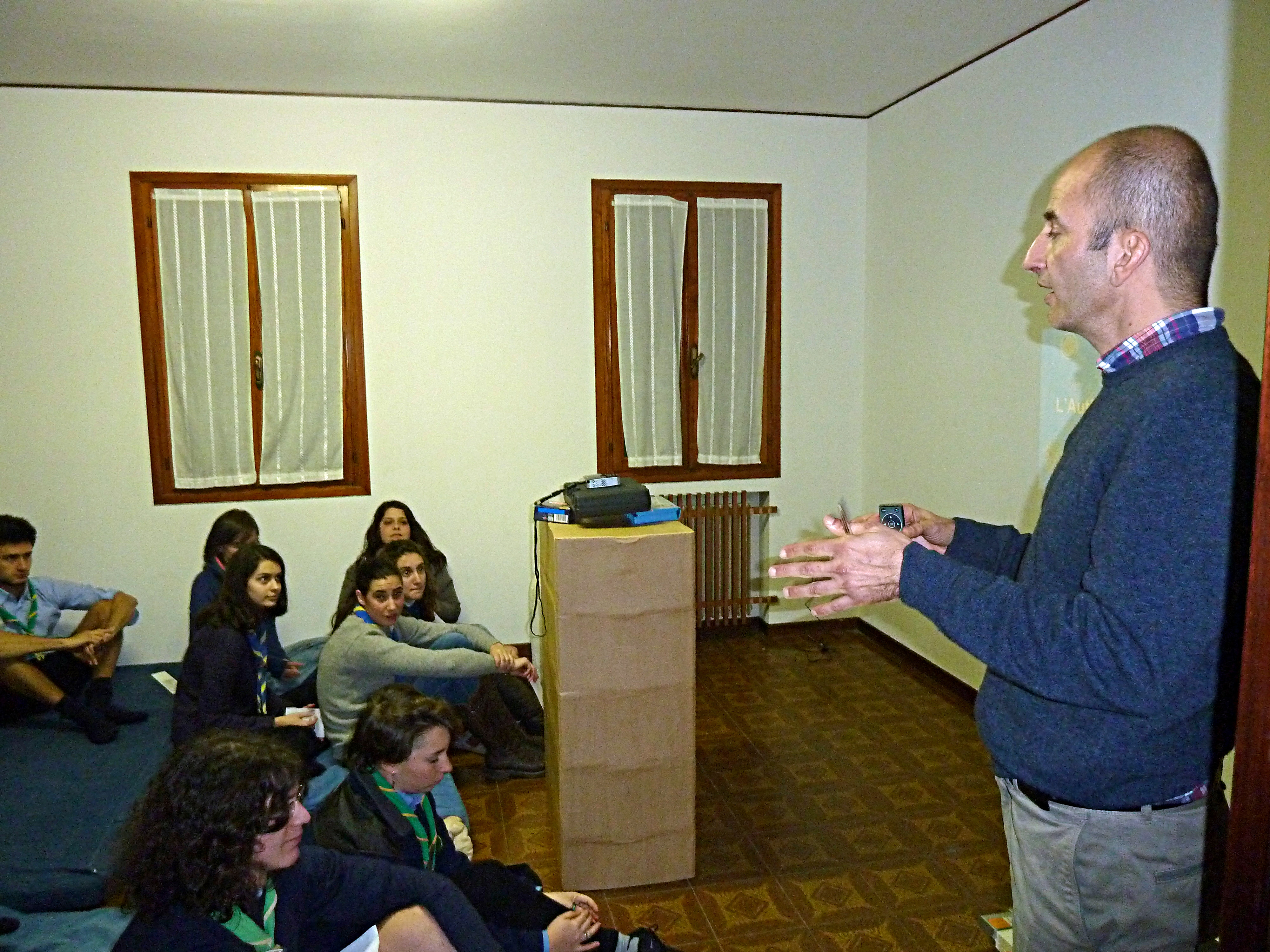 14/03/2012L’Orto di San Francesco è aperto al territorio e alla partecipazione di volontari, che vi si possono impegnare in alcune mansioni, come quella della preparazione dei pasti. Naturalmente, le attività educative in senso stretto richiedono delle serie competenze in materia di autismo, per cui è necessaria la presenza di professionalità formate. Queste operano all’OSF in un rapporto complessivo di 1 a 1 rispetto ai giovani ospiti. Anche coloro che vengono ad aiutarci per un tempo e per compiti limitati, tuttavia, debbono possedere alcune nozioni basilari sull’autismo. Qui vediamo il dott. Stefano Castiglione, psicologo consulente dell’Orto di San Francesco, mentre fornisce quelle nozioni ad un gruppo di scout desiderosi di dare un contributo alle nostre attività.